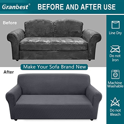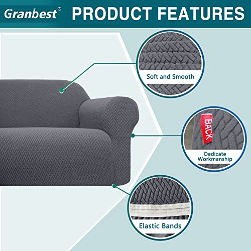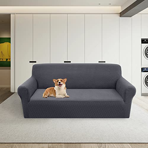 Granbest Latest Jacquard 3 Seater Sofa Cover Super Soft Stretch Non-Slip Sofa Slipcovers Four Seasons Universal Furniture Protector Cover for Dogs, Cats, Pets (3 Seater, Grey)
