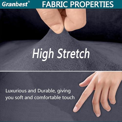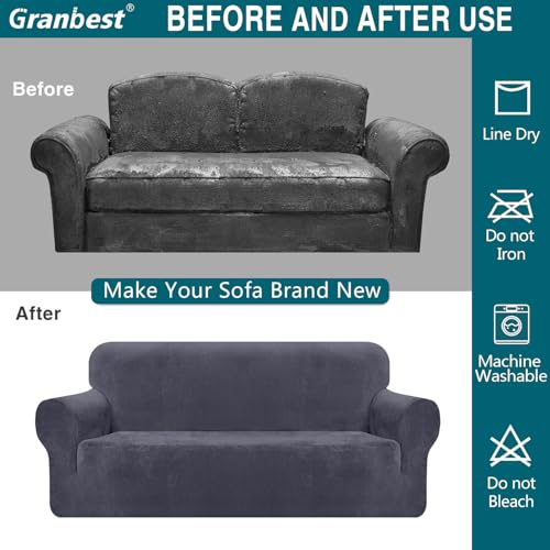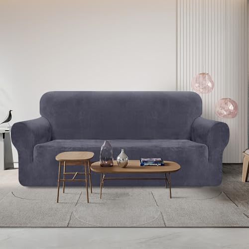 Granbest Premium Thicken Plush Velvet Sofa Cover 3 Seater High Stretch Couch Cover Super Soft Sofa Slipcover Luxury Furniture Protector for Pets and Kids (3 Seater, Grey)