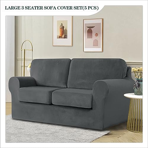 SYLC Sofa Cover with Separate Seat Cushions and Backrests Stretch Velvet Sofa Slipcover Couch Covers Furniture Protector Split Combined (Dark gray,Large 3-Seat Set 5 PCS)