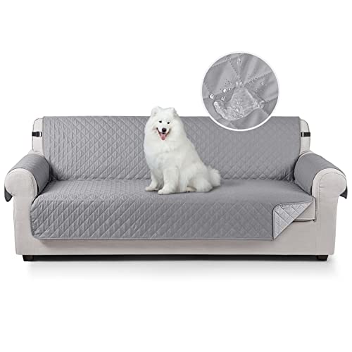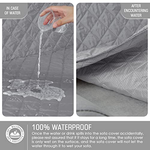 TAOCOCO Sofa Covers,Sofa Slipcovers 4 Seater,100% Waterproof Non Slip Cover for Kids/Dogs/Pets,Washable Sofa Protector with Elastic Strap(Grey)