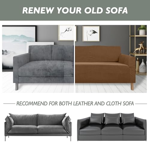 HIGH STRETCH: This couch slipcover is made of high-density 95% polyester and 5% spandex fabric, making it highly stretchable to easily fit most couches such as small or extra-large t-cushion couches, and leather couches. Its high stretch recovery ability ensures it won’t deform, offering a long lifespan while providing a comfortable, soft, breathable, delicate, and wrinkle-free experience
