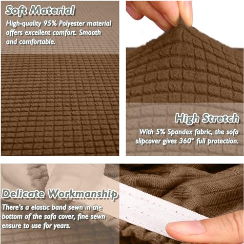 PREMIUM DESIGN: Featuring unique jacquard spandex checks, this slipcover adds a touch of modern elegance to any couch. Its high-quality fabric is available in various vibrant colors and doesn’t pill or fade, making it a healthy and skin-friendly choice for families with children