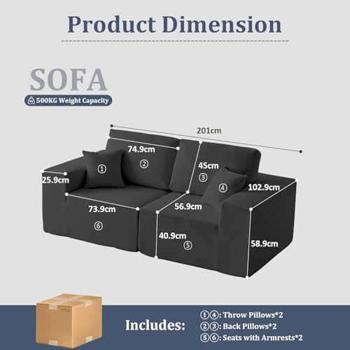 CHOSHOME 2/3 Seater Sofa with Deep Seat Sofabed Modern Plush Corduroy Small Couch for Apartment Living Room Bedroom Sofa Bed Double No Assembly Required Floor Small Sofa(Dark Grey)