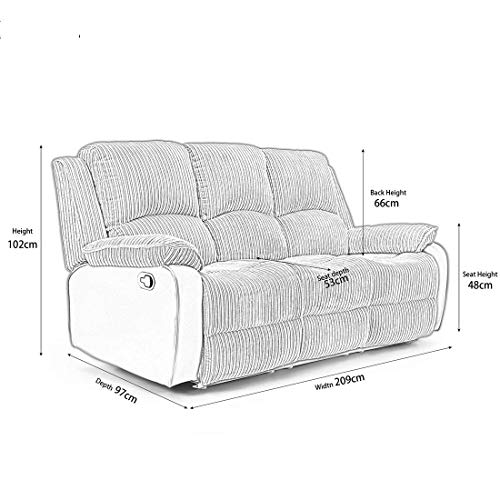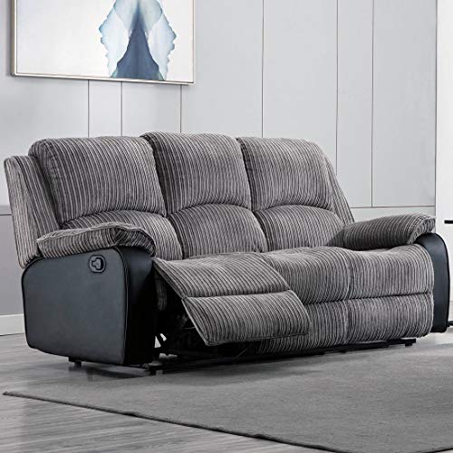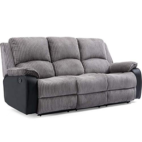 More4Homes POSTANA HIGH BACK JUMBO CORD FABRIC RECLINER 3 + 2 + 1 SOFA ARMCHAIR SET SUITE (Grey, 3 Seater)