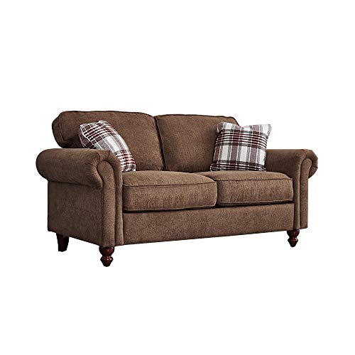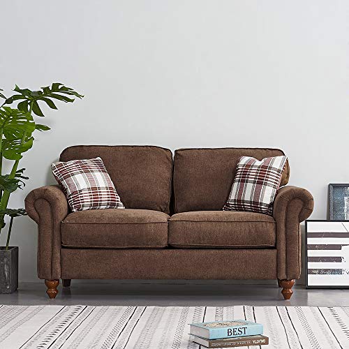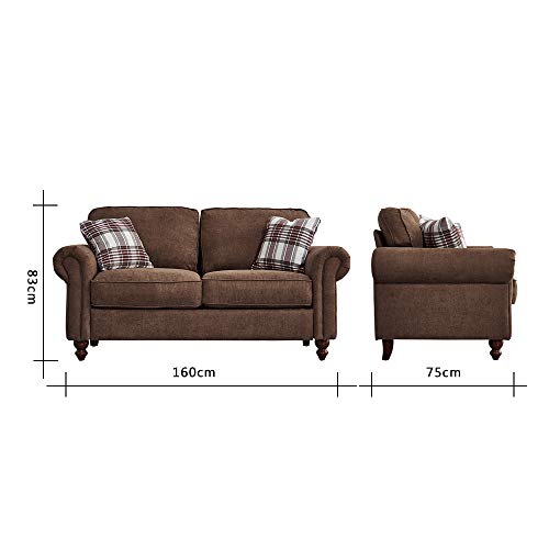 Panana Retro Design Fabric Sofa – 2 Seater with 2 Free Cushions (Brown)