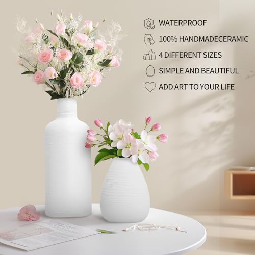 RUSTIC MATTE TEXTURE: Minimalist ceramic vases set with texture and matte white color, low-profile matte, peaceful and elegant, cool and tranquil beauty, giving more charm to flowers fit right in any space while adding intrigue and style