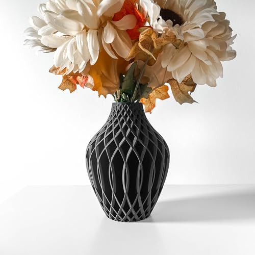 Tafunker Decorative Black Vase with Diamond Pattern, Dry flower vase, Living Room Ornaments Vase (Black, S)…