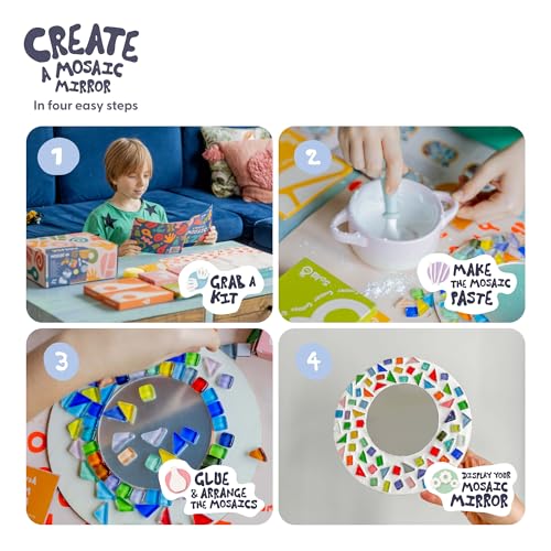 CREATE, PLAY AND DISPLAY – Our craft kits for kids ages 8-12 come with a complete set of mosaic tiles, a fun tangram tile game, 2 bags of plaster powder, 2 glue pens, and a sponge, plus a mirror, a trinket pot, and a coaster… all ready for decorating and displaying.