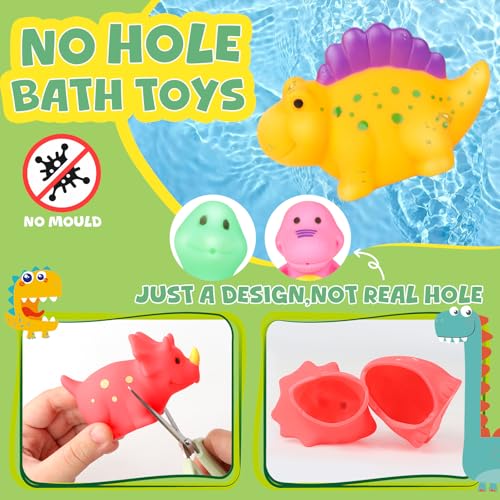 Jovicos No Hole No Mould Baby Bath Toys – 6PCS Dinosaurs Bath Toys For 1 2 3 4 Year Old Boys Girls Toddler Kids Swimming Pool Toys