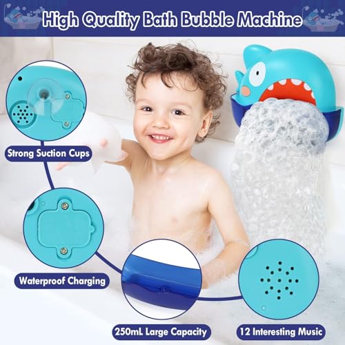 Lehoo Castle Baby Shark Bath Toy, Bath Bubble Machine Automatic Baby Bath Toys for Toddlers, Bubble Maker 1000+ Bubble Per Minute with Music (250ml)