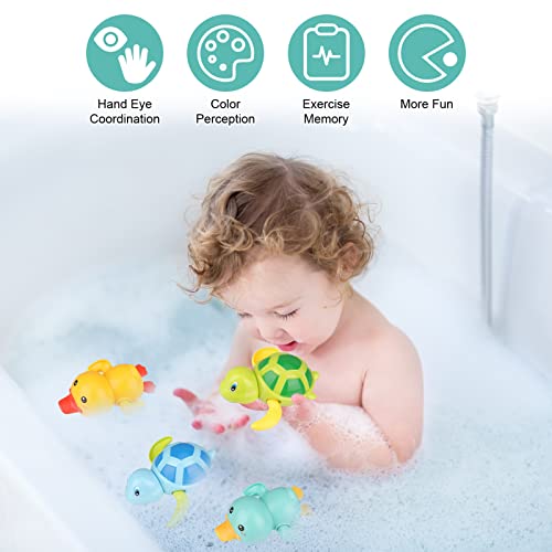 Pinenuts Baby Bath Toys, 4 Pcs Baby Bath Tub Toys Wind-up Toys Paddling Pool Toys Floating Swimming Ducks & Turtles Water Toys for Toddler Kids Girls Boys Bath-time Shower Gifts