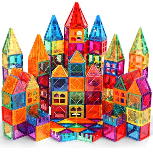 100PCS Magnetic Tiles Kids Toys – Magnetic Building Blocks STEM Magnet Building Set Preschool Learning for Kids Ages 3-8, Sensory Montessori Toys for Boys and Girls