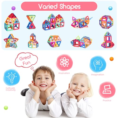 Perfect Gift for Girls and Boys: Magnetic blocks are suitable for any festivals and occasions, like birthdays, Christmas, Preschool, Day Care Centers, and so on. Magnetic building tiles help kids master construction skills, color recognition, sorting skills, stacking skills. Magnetic tiles for kids is perfect gift for boys and girls