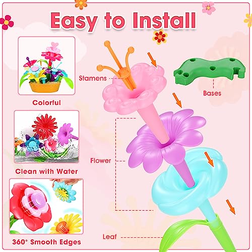 🌺Easy To Clean & Storage — The colorful fivejoy flower garden building toys will not fade even washed. Therefore, after every time children take it to play outdoors, you can easily wash away the stains, keep it clean & hygienic, make your kids play like brand new; Moreover, fivejoy flower garden building toys is equipped with a large storage box, even a 2-year-old child can easily store by himself, the best christmas/birthday/easter gift.