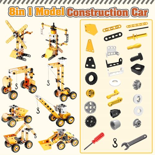 8 in1 STEM Construction Toy: The STEM construction toy contains 100 PCS and allows kids to create 8 Big Cool Models. Kids can enhance his concentration and hand-eye coordination as they use these color toys to build bulldozer, a toy crane, a forklift, a wind mill, a gantry crane, a carrier vehicle, rotary crane.
