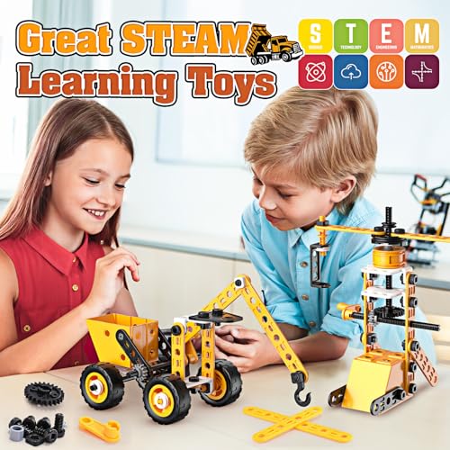 Toys for 5 6 7 8 9 10 Year Old Boys, STEM Construction Car Toys for 5-10 Year Old Boy Building Toys Gifts for 5-10 Year Old Boys Christmas Birthday Gifts for Boy and Girls Age 5 6 7 8 9 Digger Toys