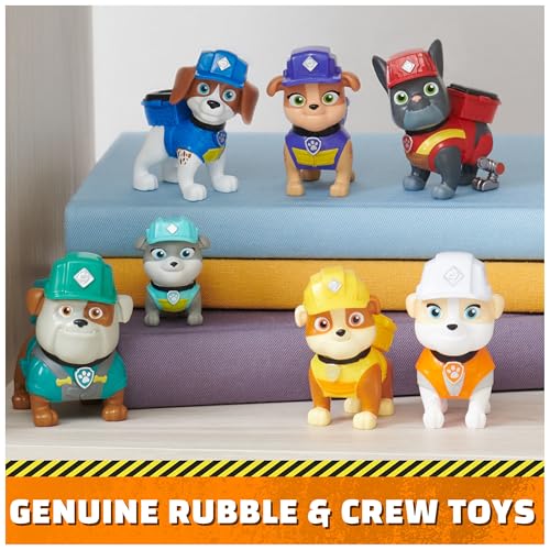 7 COLLECTIBLE TOY FIGURES: This amazing set includes your favourite PAW Patrol pup, Rubble, and his PAWsome family of construction pups — Wheeler, Mix, Charger, Motor, Auntie Crane and Grandpa Gravel