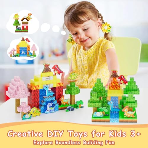 suihuooo Magnetic Blocks – 110PCS Dinosaur Toys Magnetic Building Blocks for Kids Birthday, Magnet Toys for Kids 3 4 5 6 7 8 9 Boys & Girls