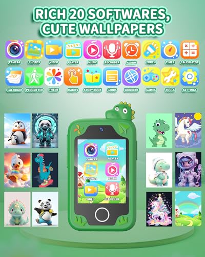 Multifunctional Kids Smart Phone: Our kids phone offers a wide range of applications and features designed to entertain and educate. Kids can take photos and videos with dual cameras, learn interestingly, cultivate habits, listen to music and stories, and play games. Ideal for both little boys girls. Toddler smart phone combines entertainment and educational tools to enrich their daily activities