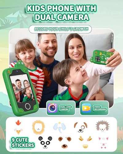 Kids Phone Toy for Boys Girls Age 3-10, 2.8”Touchscreen Phone Toy Gifts with Dual Camera, Learning Games, Music Player and 32GB Card (Green)