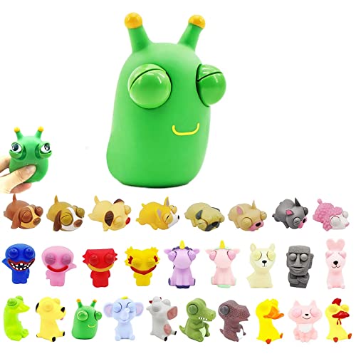3D Green Grass Worm Popping Out Eyes Squeeze Toys for Kids,Funny Pinch Toy Novelty Fidget Toy Hand Squishy Squeeze Toy Stress Relief Toys for Kids Adults,Birthday Gift,Christmas Stocking Fillers
