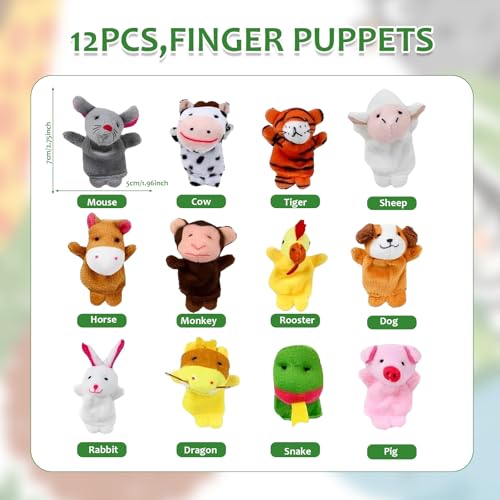 Belligern Finger Puppets 12 Pcs Finger Puppets for Toddlers, Cute Cartoon Animal Mini Plush Finger Puppets for Babies, Puppets for Children Finger puppets Toys, Novelty Toys Gift for Kids Baby