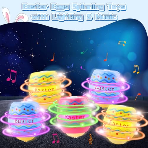 Easter Gifts for Kids, 6PCS Light Up Spinning Tops Easter Eggs Hunt Toys with Music, Easter Toys for Kids Novelty Cool Gyroscope Flashing Led Light, Easter Party Bag Fillers