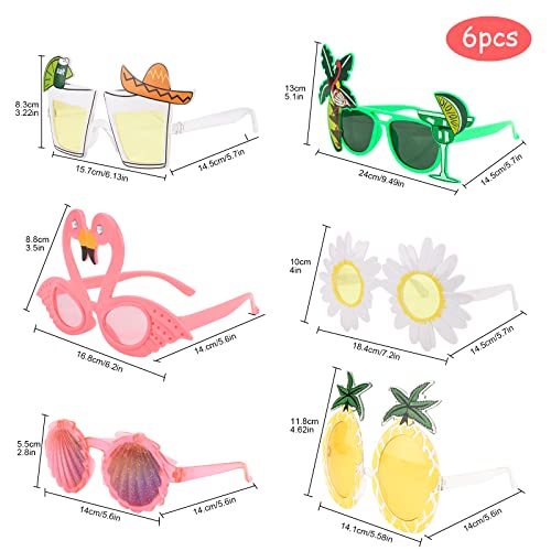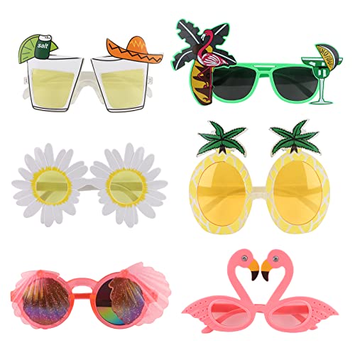 6 Pack Novelty Party Sunglasses Funny Glasses for Adults Tropical Sunglasses Beach Party Sunglasses for Hawaiian Luau Summer Beach Party Supplies