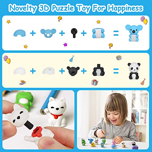 【Animal Erasers】32pcs colorful animal erasers jigsaw puzzle toy, cute and colorful design, made of cute cartoon animal shapes, making these erasers very attractive for students. And each eraser can be divided into several parts, which can be combined again according to your imagination.