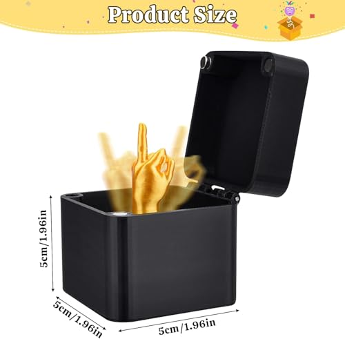 【Compact and Portable】Measuring 5 x 5 x 5 cm (approx. 2 x 2 x 2 inches), the middle finger in a box is compact enough to fit into any collection of quirky curiosities. Its size makes it a fun, unobtrusive gift. This little surprise box is sure to add a splash of humor and a touch of irreverence to any occasion.