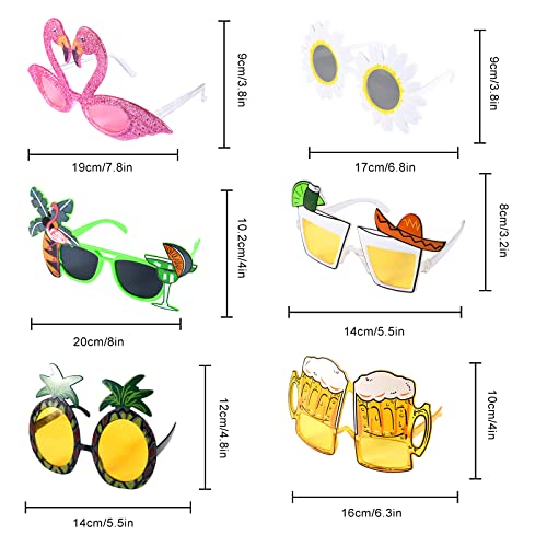 ZeYou Funny Sunglasses Set 6 Pairs,Novelty Party Glasses,Medium Hawaiian Tropical Party Glasses Set,Luau Beach Party Costume Decoration,Glasses Novelty Party Photo Booth for Children Adults
