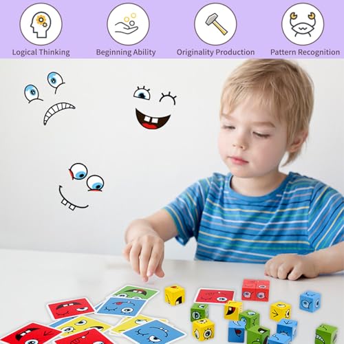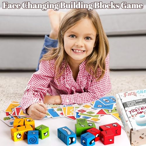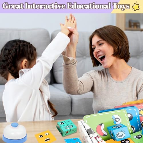 【Safe and High Quality Material】:Made from eco-friendly wood and finished with smooth, non-toxic water-based paint, this face changing magic cube game is completely safe for kids. The blocks have rounded edges for added safety, the surface of the card is covered with a film and is not easy to fade, and the arc corner design is not easy to bend and is durable.