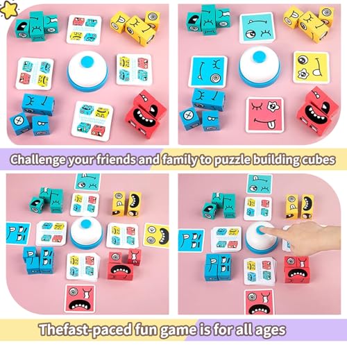 【3D Face Changing Jigsaw Puzzle】:Building block toys are suitable for children over 3 years old and are a great interactive game toy. Encourage children to use wooden blocks to match the faces on the reference card. The player who completes the puzzle first wins, making it a fun and competitive game suitable for all ages!