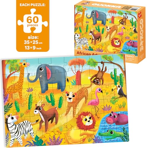 QUOKKA Jigsaw Puzzles For 3 4 Year Olds – 4×60 Jigsaws for Children Age 5 6 7 – Toddler Toy For Learning Africa Farm Ocean Forest Animals – Gift Educational Game for Boys & Girls 5-8 yo