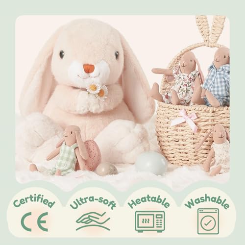 Adorably Realistic Bunny Design: This lifelike Easter Bunny stuffed animal features big floppy ears, oversized feet, and an irresistibly cute expression. Made with ultra-soft plush fabric, heating pad microwavable is a delightful companion for kids and adults alike