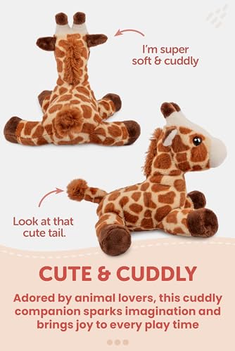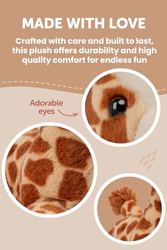 COSY COMPANION: Meet our Giraffe Plush Toy, your new cuddle buddy from the wild! Soft and huggable, this plush giraffe is perfect for kids and kids at heart, ready for hours of cuddles and playtime adventures. Its charming design brings a piece of the savannah into your home, promising fun and snuggles for everyone.