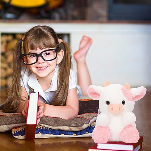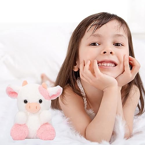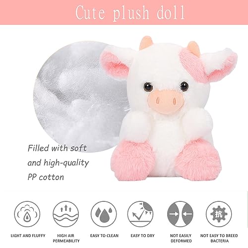 【Product Size】Small and cute pink cow stuffed animal is 20CM. plush toy is vacuum packed, there may be creases, please stretch and shake to loosen the cotton, the little guy will gradually become fluffy. Finally put it in the vent, it will take 1-2 days to regain its shape.